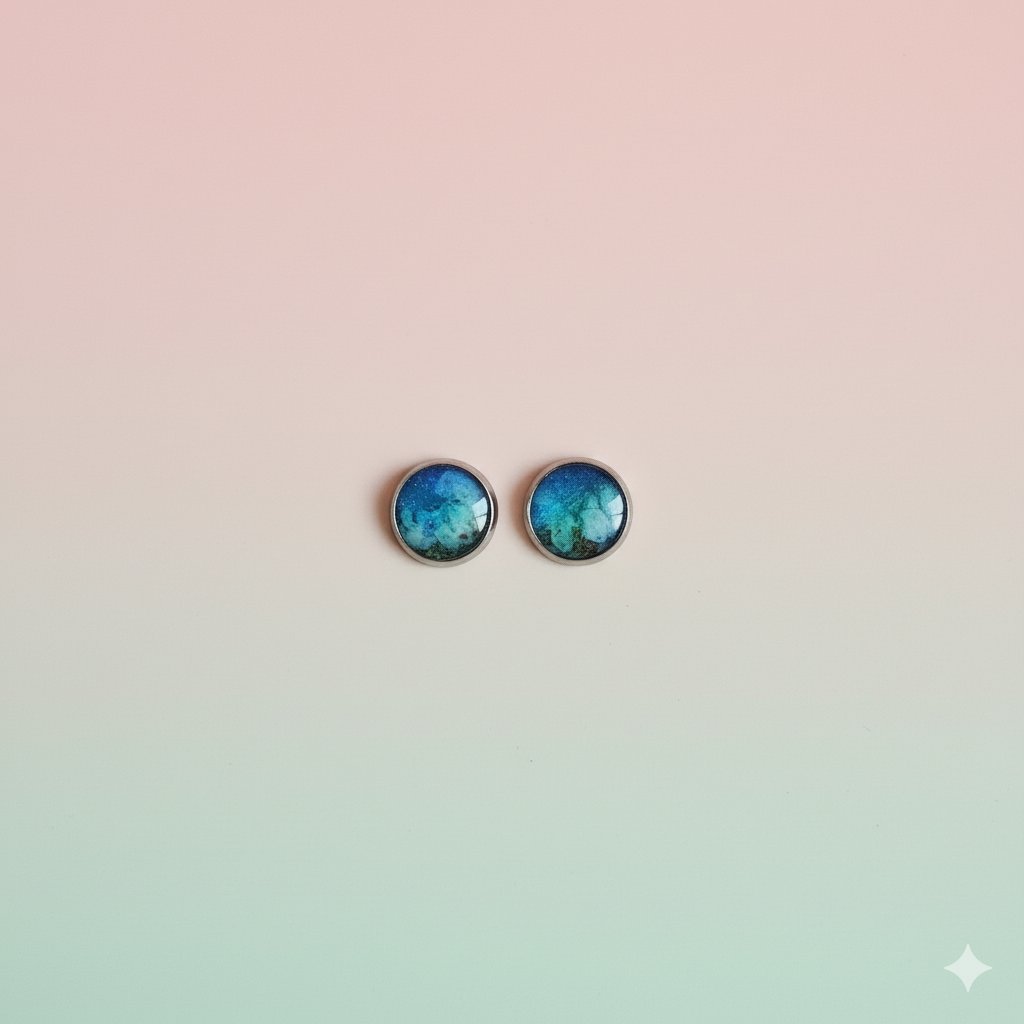 ¡El mar de Mallorca en su versión más delicada y discreta! Estos diminutos pendientes de botón encapsulan un paisaje submarino en miniatura. Son una joya minimalista, única y artesanal, perfecta para el uso diario o para un segundo piercing.