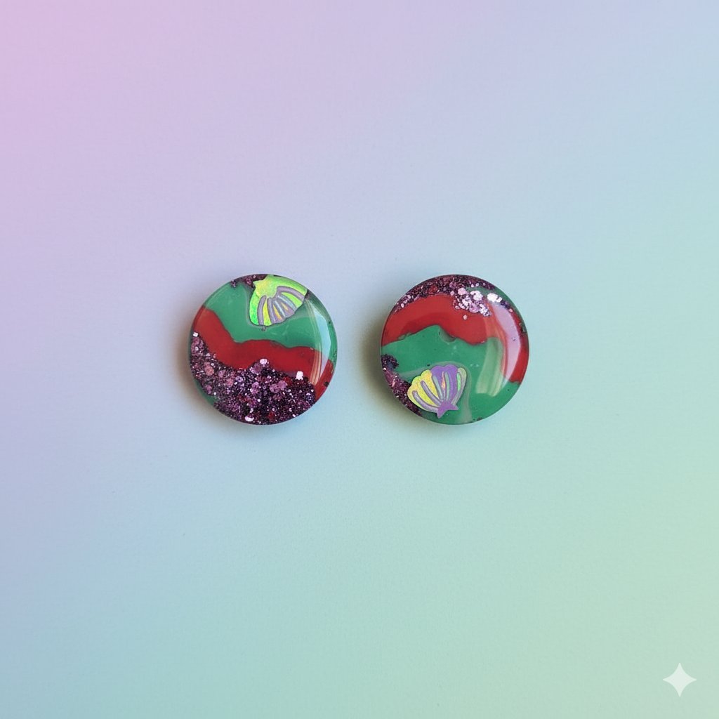 ¡Lleva un pedacito del fondo del mar con un toque funky! Los pendientes de botón "Catalina" son una pequeña joya que evoca un tesoro submarino con una explosión de color y brillo. Son el accesorio perfecto para inyectar fantasía y energía a tu look.