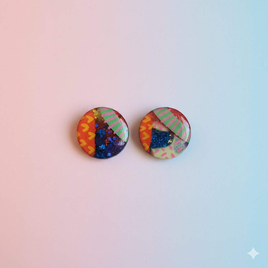 ¡Lleva un diseño de mosaico lleno de energía! Los pendientes de botón "Catalina" son una inyección de estilo pop art y kitsch que fusiona una variedad de colores y patrones en una joya compacta. Son el accesorio perfecto para quienes aman lo audaz y lo divertido.