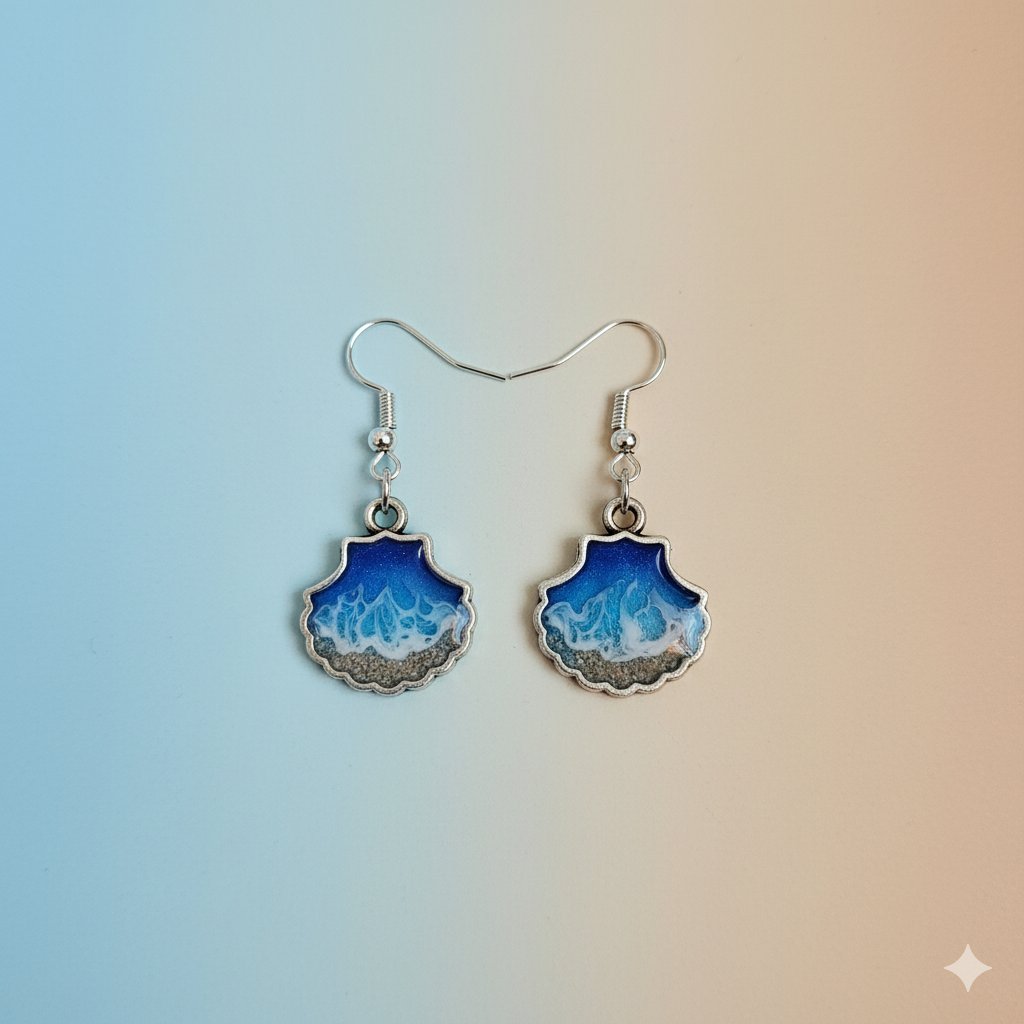 ¡El mar a tus pies, en una forma atemporal! Estos encantadores pendientes colgantes capturan el diseño clásico de una concha con un vibrante paisaje de la costa en su interior. Son una pieza de joyería única y artesanal, perfecta para amantes del mar, la naturaleza y el estilo náutico elegante.