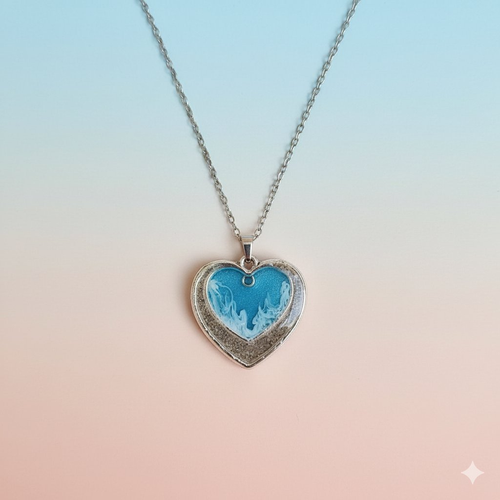 El colgante de corazón está elaborado a mano con resina epoxi de la mejor calidad, garantizando un acabado cristalino y duradero. Su diseño incluye: