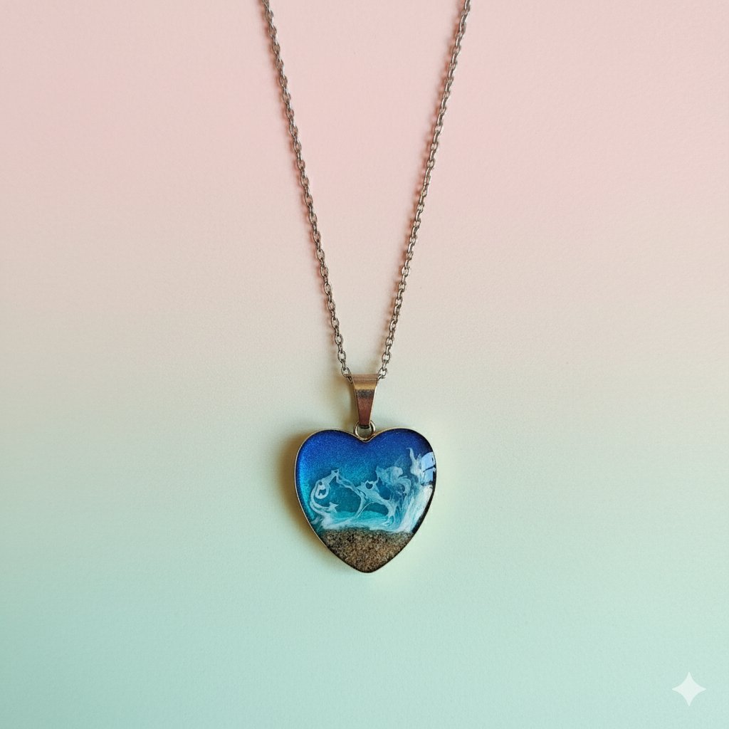 El colgante de corazón está elaborado a mano con resina epoxi de la mejor calidad, garantizando un acabado cristalino y duradero. Su diseño interior incluye: