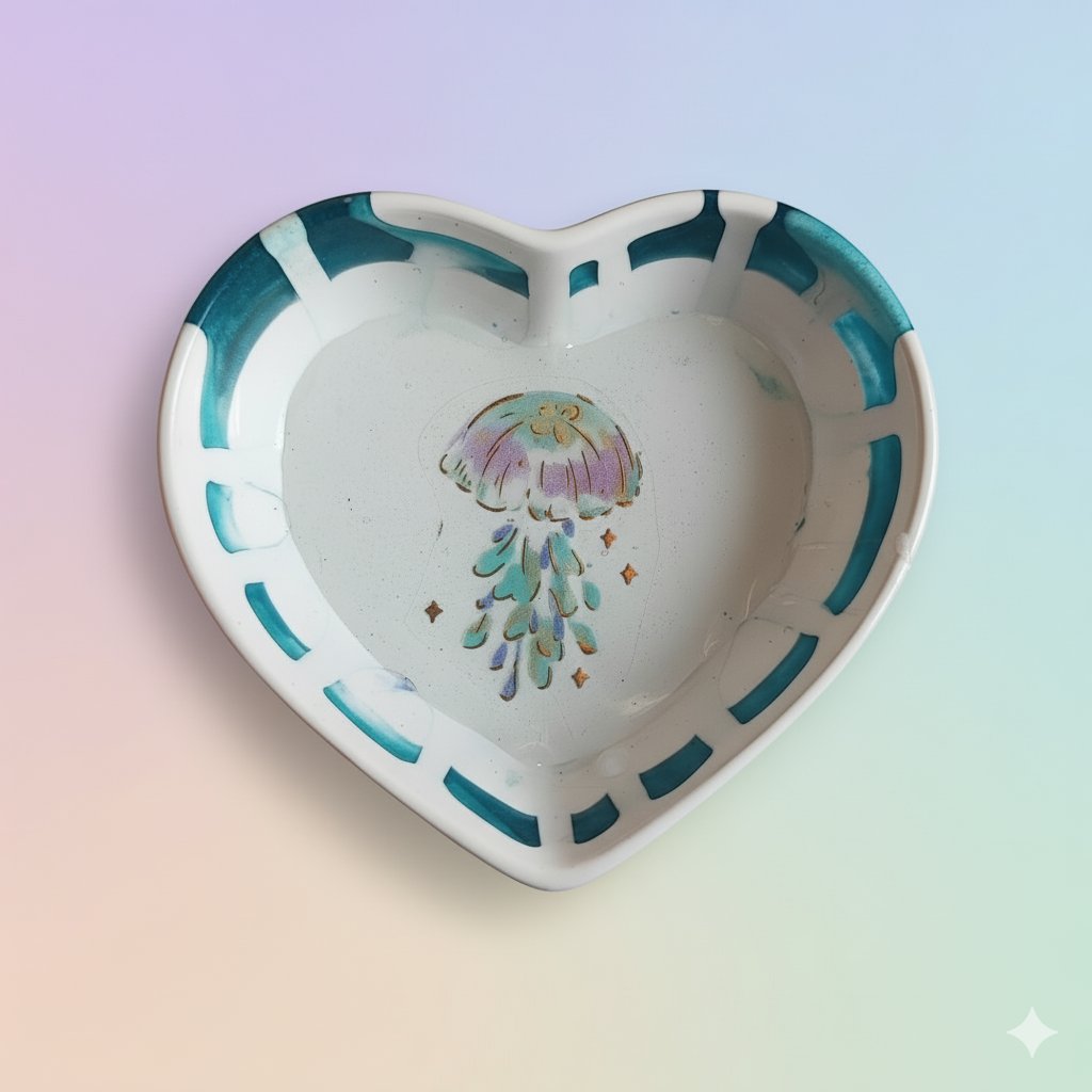 ¡Lleva un toque de misterio y ternura marina a tu hogar! Este precioso joyero/bandeja con forma de corazón es ideal para organizar tus joyas o decorar tu tocador. Cada pieza es única y artesanal, capturando la fantasía del océano Mediterráneo.