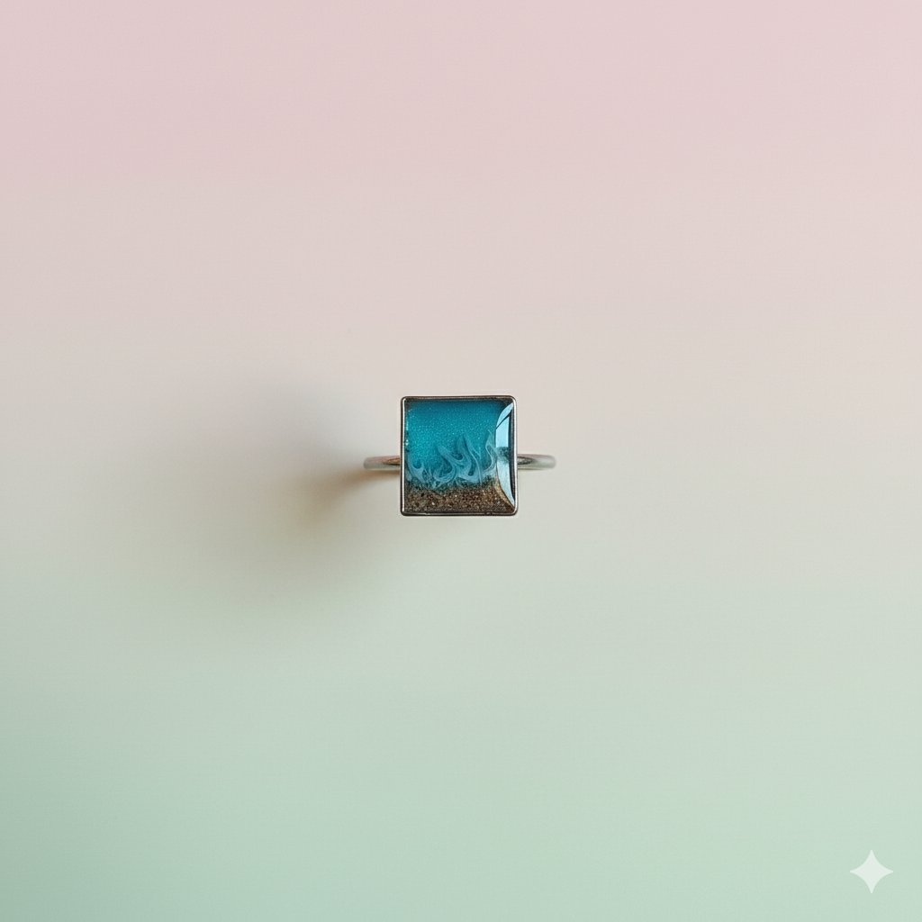 ¡Geometría y mar en perfecta armonía! Este anillo combina una forma geométrica moderna (cuadrado) con un diminuto paisaje de la costa balear. Es una joya única y artesanal, perfecta para quienes buscan un estilo contemporáneo y llevan el mar en el corazón.
