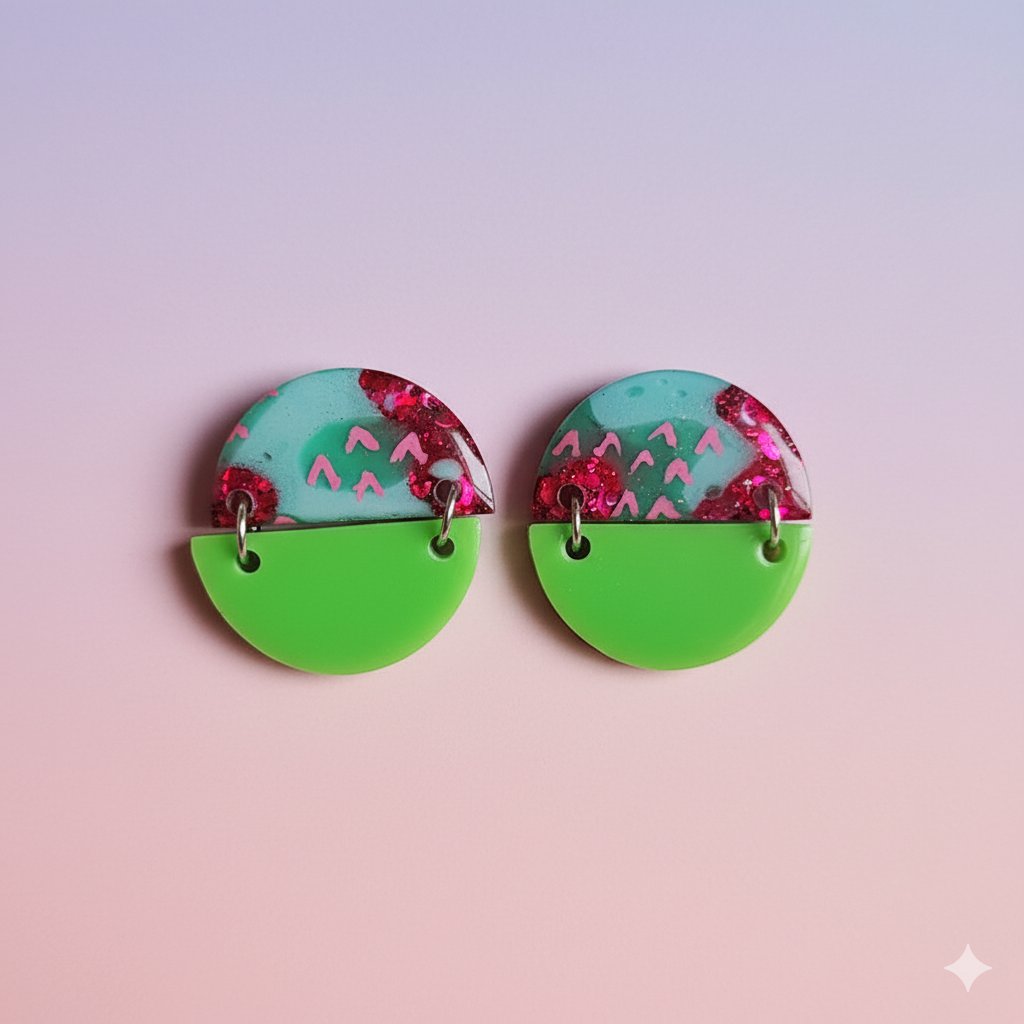 Los pendientes "Gemma" son el accesorio esencial para los amantes del estilo kitsch, pop y de los colores llamativos. Son el complemento perfecto para darle vida a un outfit neutro o para combinar con otros estampados atrevidos.