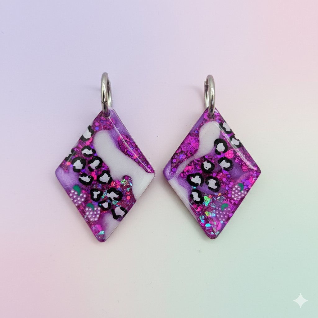 Estos pendientes con forma de rombo/diamante están elaborados a mano con resina epoxi de la mejor calidad, garantizando un acabado ultra-brillante, liso y duradero. El diseño incluye: