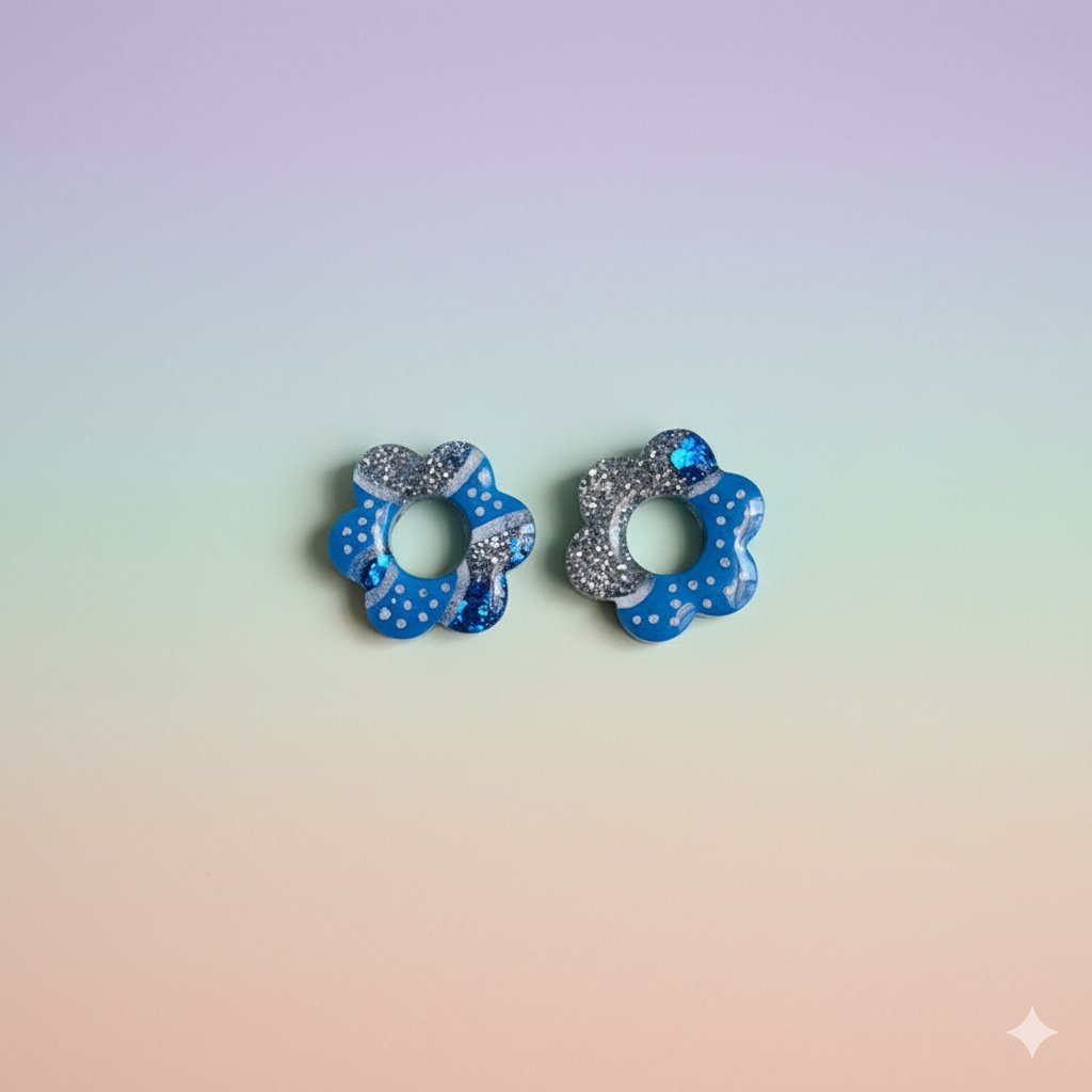Estos pendientes de botón "Melisa" son una pequeña joya que evoca la magia del invierno. Su diseño floral con tonos azules y un brillo plateado es perfecto para añadir un toque funky y elegante a tu estilo diario.