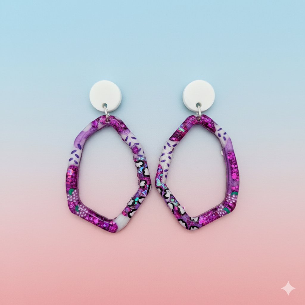 ¡Una pieza statement con la elegancia del morado y la audacia del diseño moderno! Los pendientes colgantes "Natalia" son una joya vibrante y funky que combina una silueta orgánica hueca con un diseño interior deslumbrante, perfecto para inyectar glamour y color a tu look.