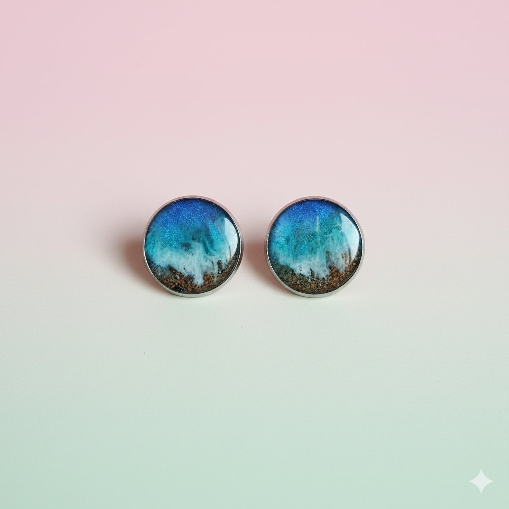 ¡El mar de Mallorca encapsulado en una joya compacta! Estos elegantes pendientes de botón capturan el dramático momento en que las olas rompen en la orilla. Son una pieza de joyería discreta, única y artesanal, ideal para quienes desean llevar un recuerdo significativo del Mediterráneo a diario.