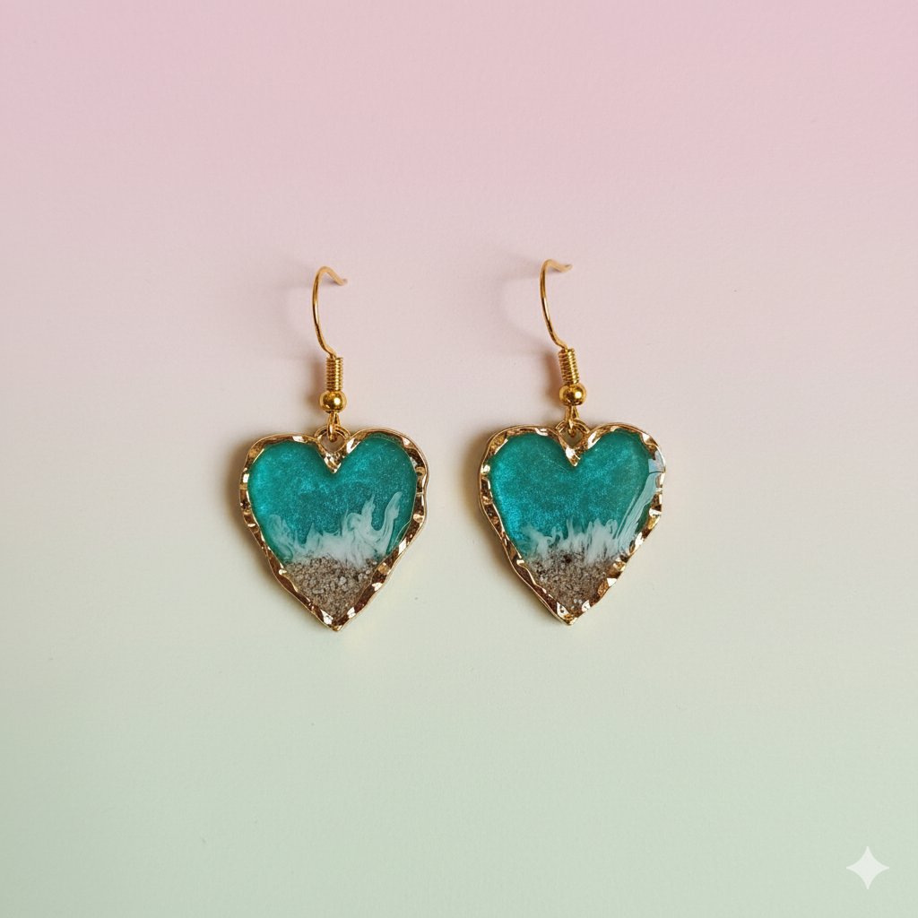 ¡El amor por el mar encapsulado en una joya de lujo! Estos exquisitos pendientes colgantes combinan la silueta clásica del corazón con un vibrante paisaje de playa. Son una pieza única y artesanal, perfecta para regalar o para llevar un recuerdo chic y preciado del Mediterráneo.