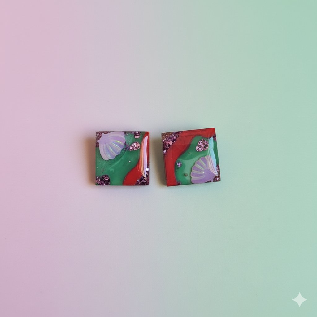Estos pendientes cuadrados están elaborados a mano con resina epoxi de la mejor calidad, lo que garantiza un acabado ultra-brillante, liso y duradero. El diseño temático incluye: