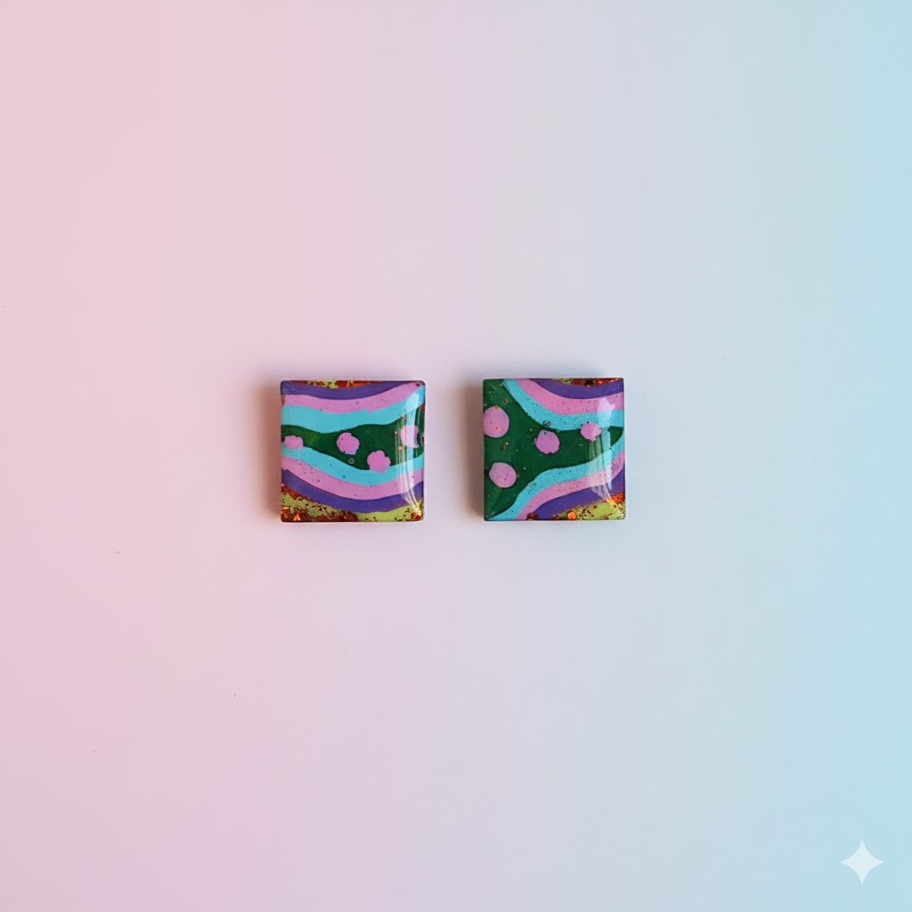 Estos pendientes cuadrados están elaborados a mano con resina epoxi de la mejor calidad, lo que garantiza un acabado liso, ultra-brillante y duradero. El diseño temático incluye: