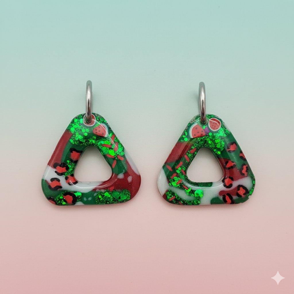 Estos pendientes triangulares huecos están elaborados a mano con resina epoxi de la mejor calidad, lo que garantiza un acabado ultra-brillante, liso y duradero. El diseño es una mezcla audaz de:
