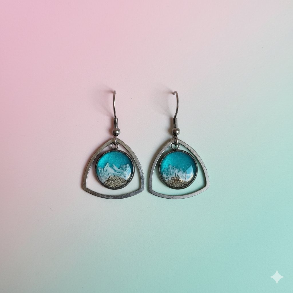 Cada pendiente está elaborado a mano con resina epoxi de la mejor calidad, garantizando un acabado cristalino y duradero. Su diseño incluye: