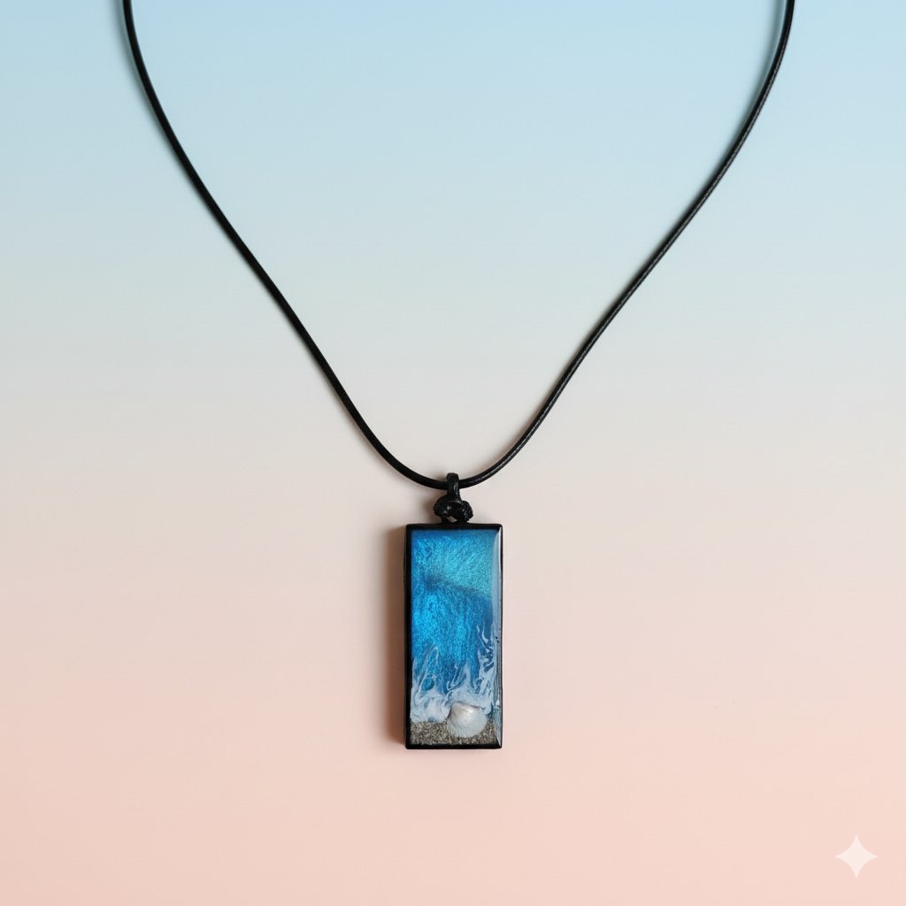 ¡Minimalismo y naturaleza en perfecta armonía! Este elegante collar presenta un colgante rectangular que captura un vibrante paisaje de la costa mediterránea. Es una pieza de joyería única y artesanal, ideal para quienes aman el estilo contemporáneo y llevan el mar en el corazón.